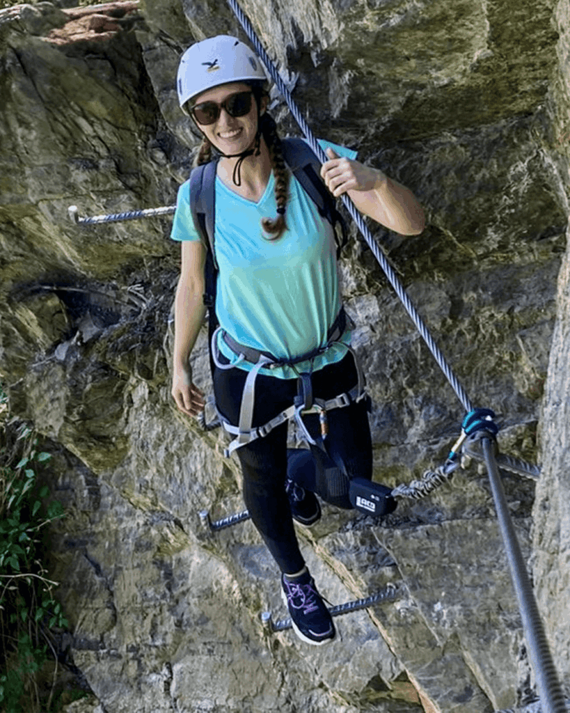 👉 In ihrer Freizeit findet man sie beim Voltigieren (mit ihrer Gruppe sogar mehrfache Saarlandmeisterin), Reiten, auf Klettersteigen, beim Joggen oder Stricken (aktuelles Projekt: ein Kleid!).